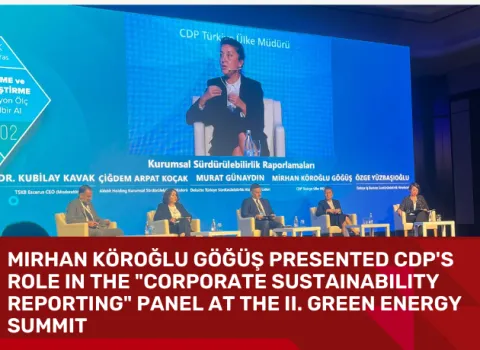 Mirhan Köroğlu Göğüş, CDP Türkiye Country Director, participated in the panel session on "Corporate Sustainability Reporting" where she shared the latest updates on CDP’s reporting standards and its work related to TSRS (ISSB). She outlined the upcoming developments in reporting requirements, highlighting the transition from climate reporting to nature reporting and CDP's role in this transition.