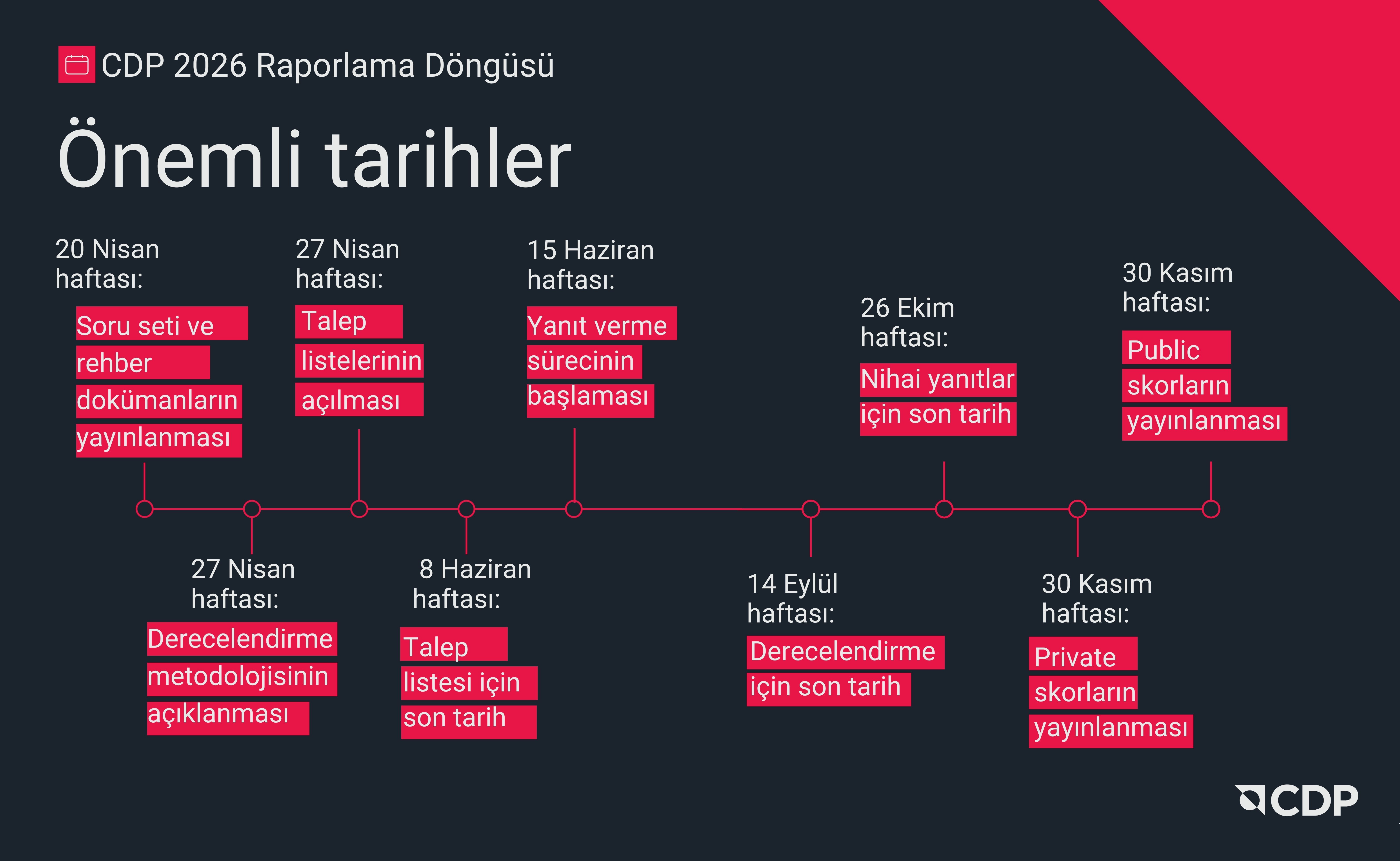 Bu yılın raporlama döngüsüne ait önemli tarihleri inceleyebilirsiniz: