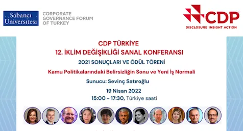 CDP Türkiye, 19 Nisan Salı günü 12. İklim Değişikliği Sanal Konferansı ve Ödül Töreni’ni gerçekleştirdi. Konferansın açılış konuşmalarını Garanti BBVA Genel Müdür Yardımcısı Ebru Dildar Edin ve CDP Kurucu ve Yönetim Kurulu üyesi Paul Dickinson gerçekleştirdi.
